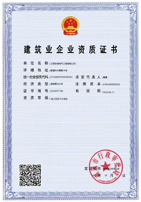 江蘇安信電氣工程有限公司,成立于2004年6月,注冊資金8188萬元,占地22000平方米,位于南通市興泰路18號,東接南通站、興東機(jī)場,西鄰南通西站、滬蘇通公鐵長江大橋,交通便捷。